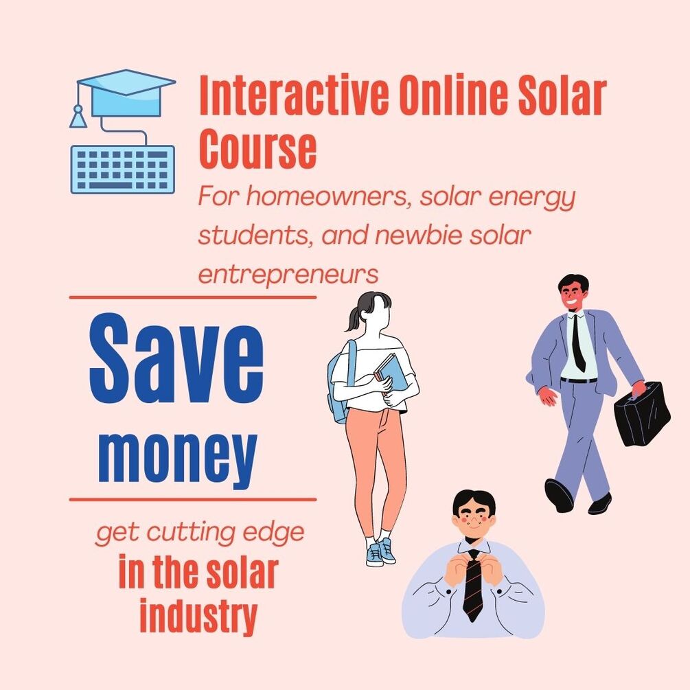 "This interactive online course will teach you everything from the basics of solar energy to the sizing, designing, complete solar installation process, and finding the complete financial feasibility of the solar power system."